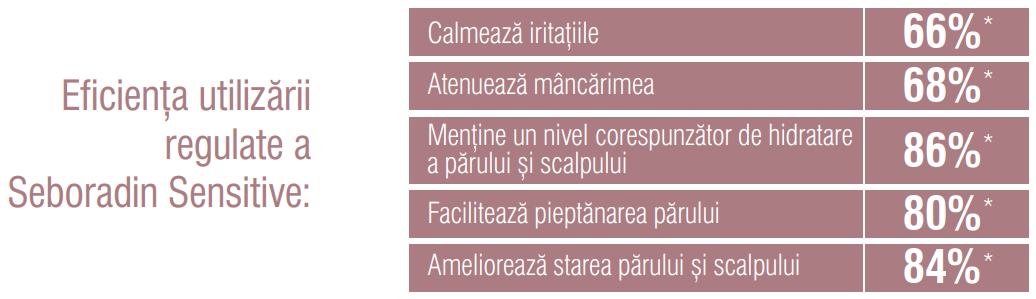 Hipersensibilitatea scalpului se manifestă prin: senzație de tensionare a scalpului, roșeață, mâncărime sau fsurare locală a pielii. Scalpul sensibil necesită o îngrijire de excepție, de aceea trebuie folosite preparate cu efect delicat: hidratant, calmant, care vor restabili bariera naturală de protecție a scalpului. Pielea sensibilă este foarte delicată și deseori însoțită de problema atopiei. În cazul hipersensibilității, pielea suferă mai ușor reacții alergice, iritații locale, iar procesul de regenerare se prelungește. Acest lucru este influențat, printre altele, de pH-ul necorespunzător al pielii. Datorită aplicării tratamentului Seboradin Sensitive, pielea își recapătă pH-ul corespunzător, iar reconstruirea barierei epidermei se activează datorită stimulării autoreparării naturale a scalpului deteriorat.